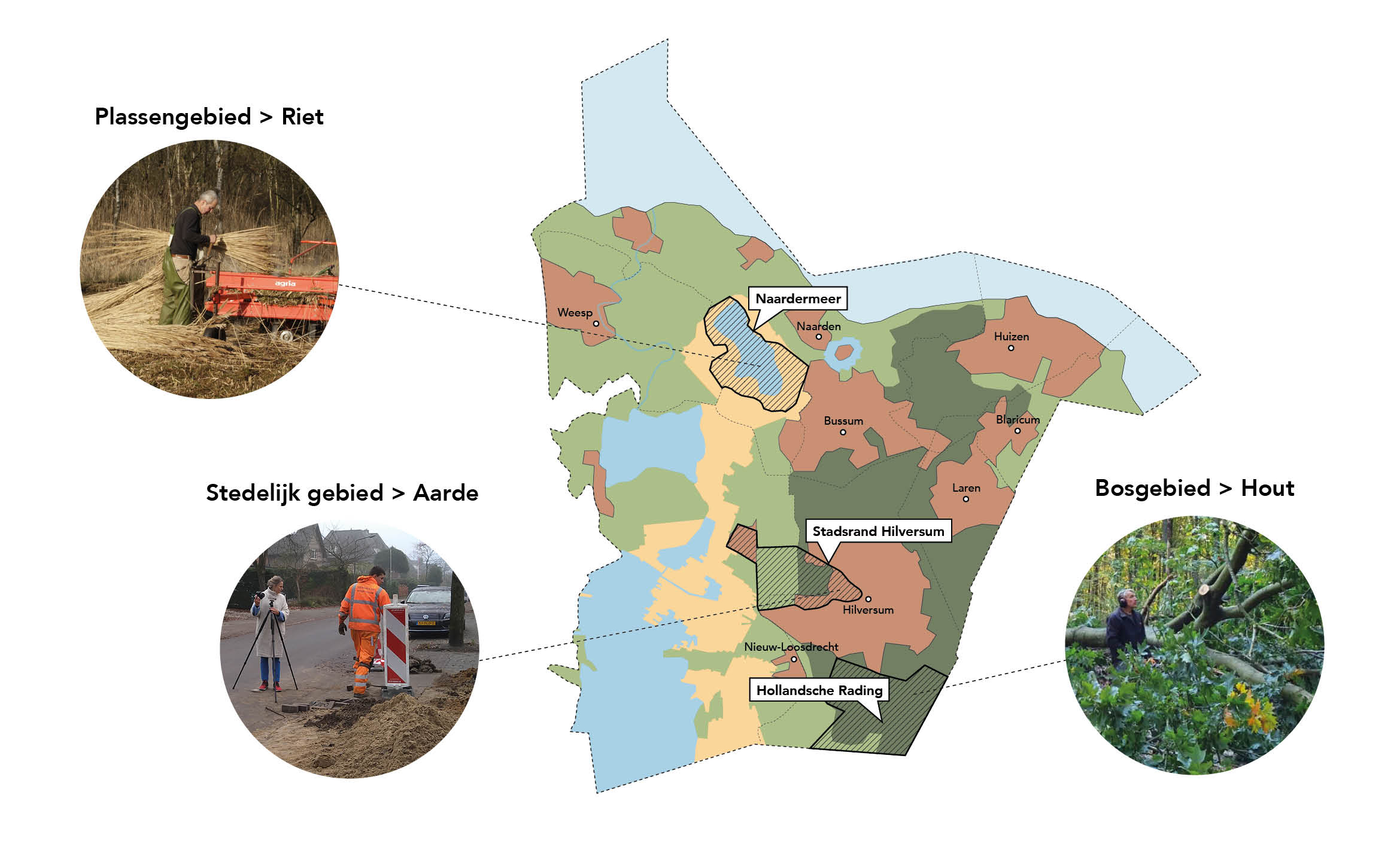 De bossen, landgoederen en akkers rondom Hilversum bieden veel potentie voor het produceren van natuurlijk / biobased bouwmateriaal dat kan worden ingezet voor duurzame bouwontwikkelingen. Het biodiverser maken van voormalige productiebossen in de regio levert een continue reststroom aan hout op die duurzaam kan worden ingezet voor de bouw. Grote potentie heeft lokale akkerbouw van bijvoorbeeld vlas en hennep, vezelrijke bouwgewassen die steeds vaker als grondstof worden gebruikt voor bouwmaterialen. Daarnaast ziet Bouwtuin veel mogelijkheden om aarde (leem) te herintroduceren als hedendaags bouwmateriaal, aangezien aarde één van de grootste bouwafvalstromen vormt binnen het stedelijk gebied.